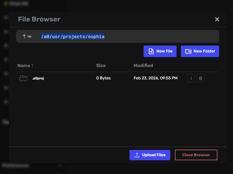 /a0/usr/projects/sophia/- this will only call these files when you prompt it or some workflow prompts it.