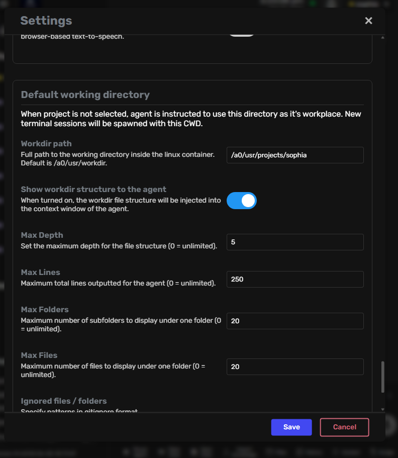 /a0/usr/projects/sophia/.a0proj/knowledge/- this will inject context as embeddings during run time.