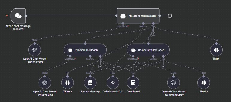 Orchestrates two LLM agents and the CoinGecko MCP client to deliver a concise roadmap for any ERC-20/BEP-20 token to reach its next psychological price, volume, holder, liquidity, listing, and dev-activity thresholds. No speculation; only on-chain and market data.